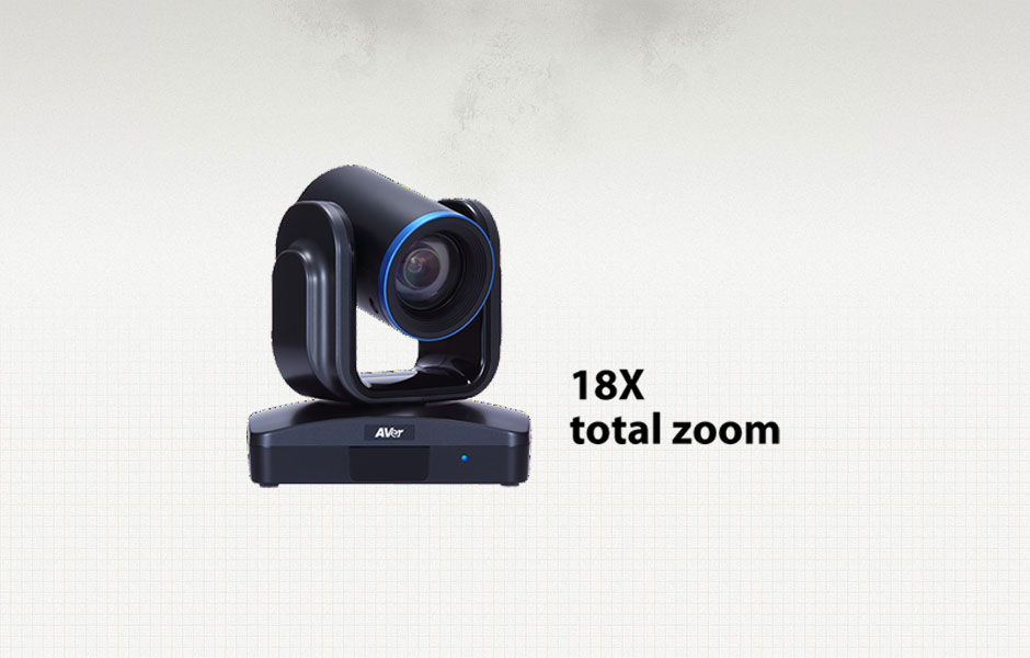 總縮放倍數高達 18 倍的變焦鏡頭可左右 130°、上 90° 下 25° 轉動,即使在大會議室中也可清楚呈現每位與會人員;加上移動中的快速對焦,創造與會者視頻會議新體驗。