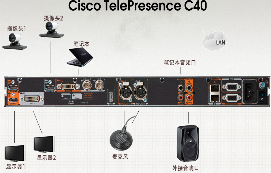 CISCOC40是目前業(yè)界最優(yōu)秀的一款1080P視頻會(huì)議編解碼器。能夠提供無比清晰的1080P高清視頻和CD級(jí)的寬頻立體聲體驗(yàn)。憑借豐富的輸入和輸出端口,C40可以連接種類繁多的外圍視音頻設(shè)備,從而成為可適用與多種類型會(huì)議室的視頻通信核心單元。