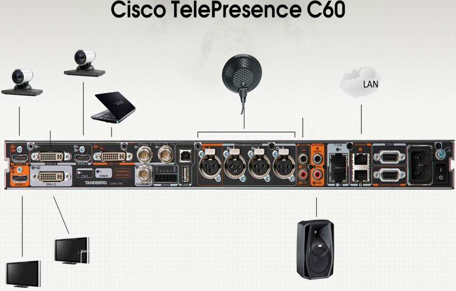 思科網真編解碼器C60是1080p高清視頻協作引擎。C60提供了將高清視頻和協作融入更多基于團隊的應用程序的靈活性。集成到會議室,會議室和特殊的工業項目簡單和容易。