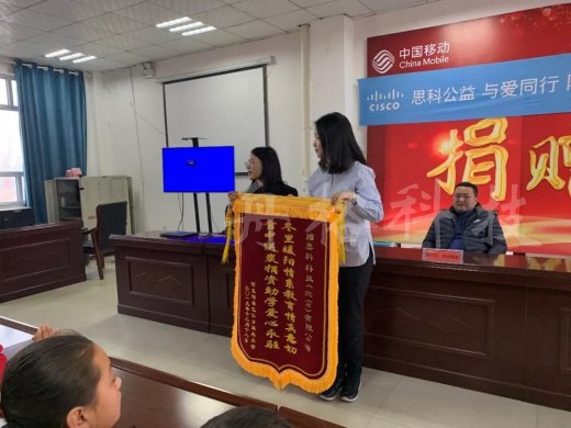 在捐贈儀式上回贈思科錦旗