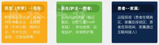 在本地疫情防控期間,通過遠(yuǎn)程醫(yī)療來提供遠(yuǎn)程會(huì)診、防治指導(dǎo)等服務(wù),下沉了專家資源,提高基層處置能力,緩解診療資源壓力,減少傳播風(fēng)險(xiǎn)。同時(shí),通過遠(yuǎn)程教育方式開展培訓(xùn),也能夠迅速提高基層醫(yī)務(wù)人員醫(yī)療服務(wù)和個(gè)人防護(hù)能力。 遠(yuǎn)程醫(yī)療的開展場(chǎng)景主要包括三個(gè)方面: