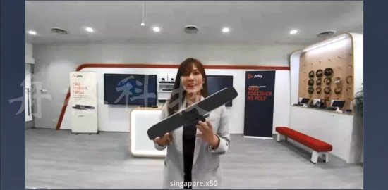 演示團隊通過北京、上海、新加坡三地連線,分別為大家演示了Poly耳機、揚聲器系列產品在不同辦公場景的應用、在疫情期間個人端在家辦公所保證的語音質量效果,以及全新Studio X30、X50的智能拾音與降噪、拾音魔墻等強大功能。