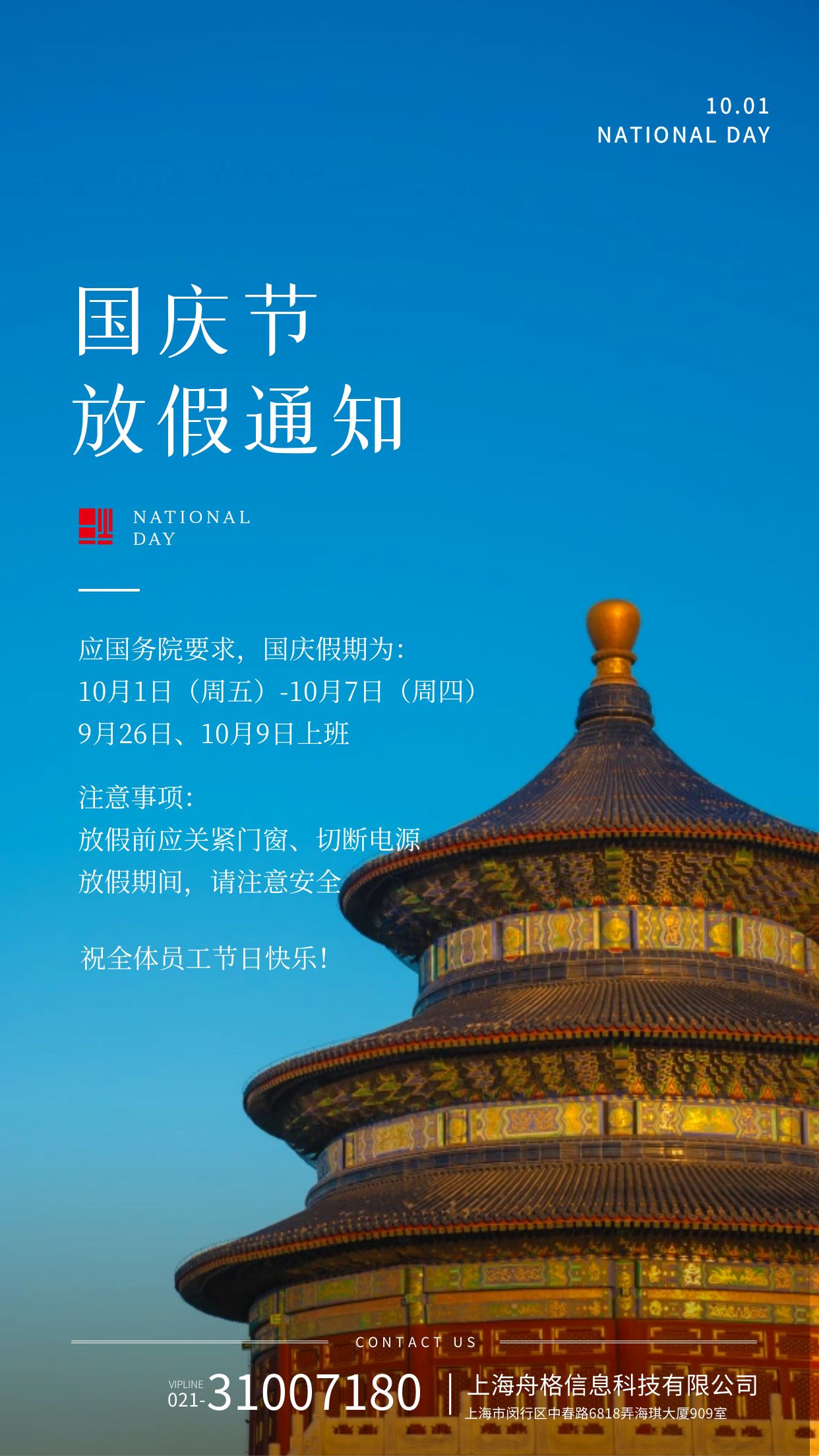 國慶放假通知