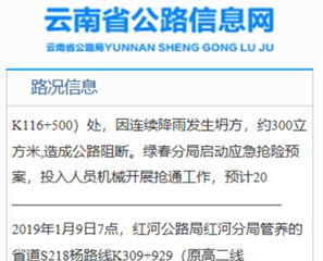 對于我國云南來說,往年的1月份都是旱季,天氣干燥,一個月里下雨甚至是陰天的時候都很少,因此像這樣1月大范圍暴雨非常少見,我國云南南部的一些地方更是可能打破一月歷史降雨記錄。作為云南省交通運輸廳領導下的全省公路管理養護專業機構,云南省公路局在暴雨來襲時迎來了應急搶修高峰。