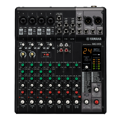 10通道調音臺:4個話筒 / 10 個線路輸入 (4 個單聲道 + 3 個立體聲) / 1 立體聲母線 / 1 AUX (包括 FX)